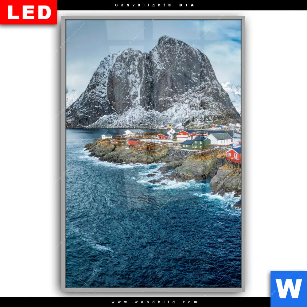Canvalight® DIA Leuchtbild | Fischerdorf mit roten Häusern | Hochformat