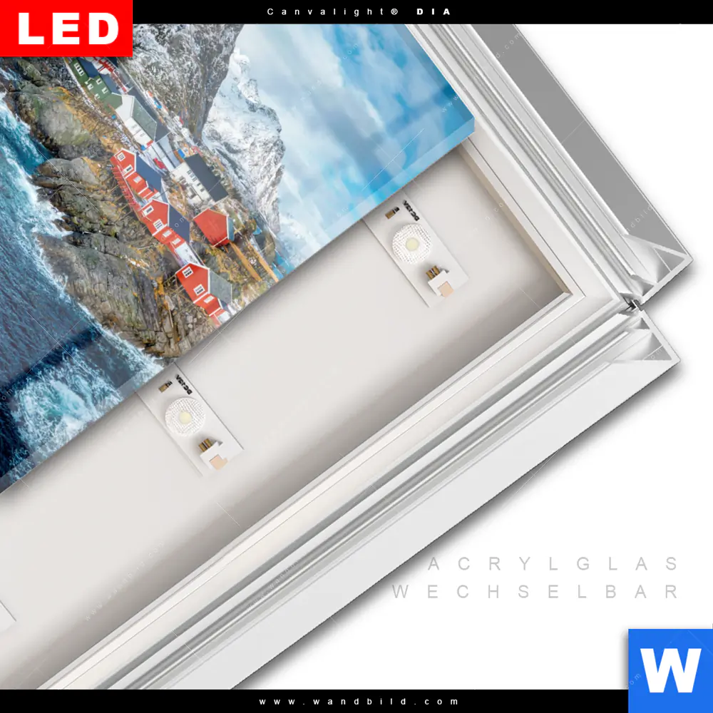 LED-Glasbild mit austauschbarem Acrylglas-Druck (Wechselbild)