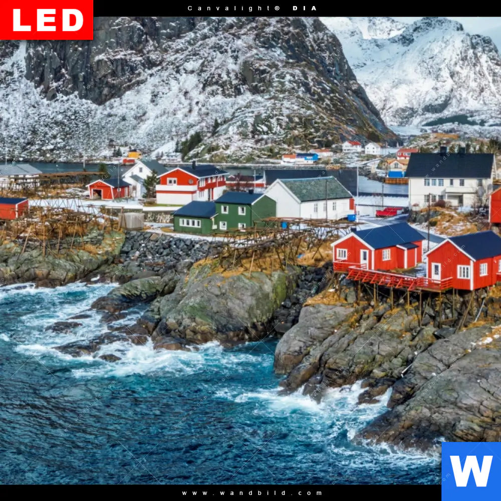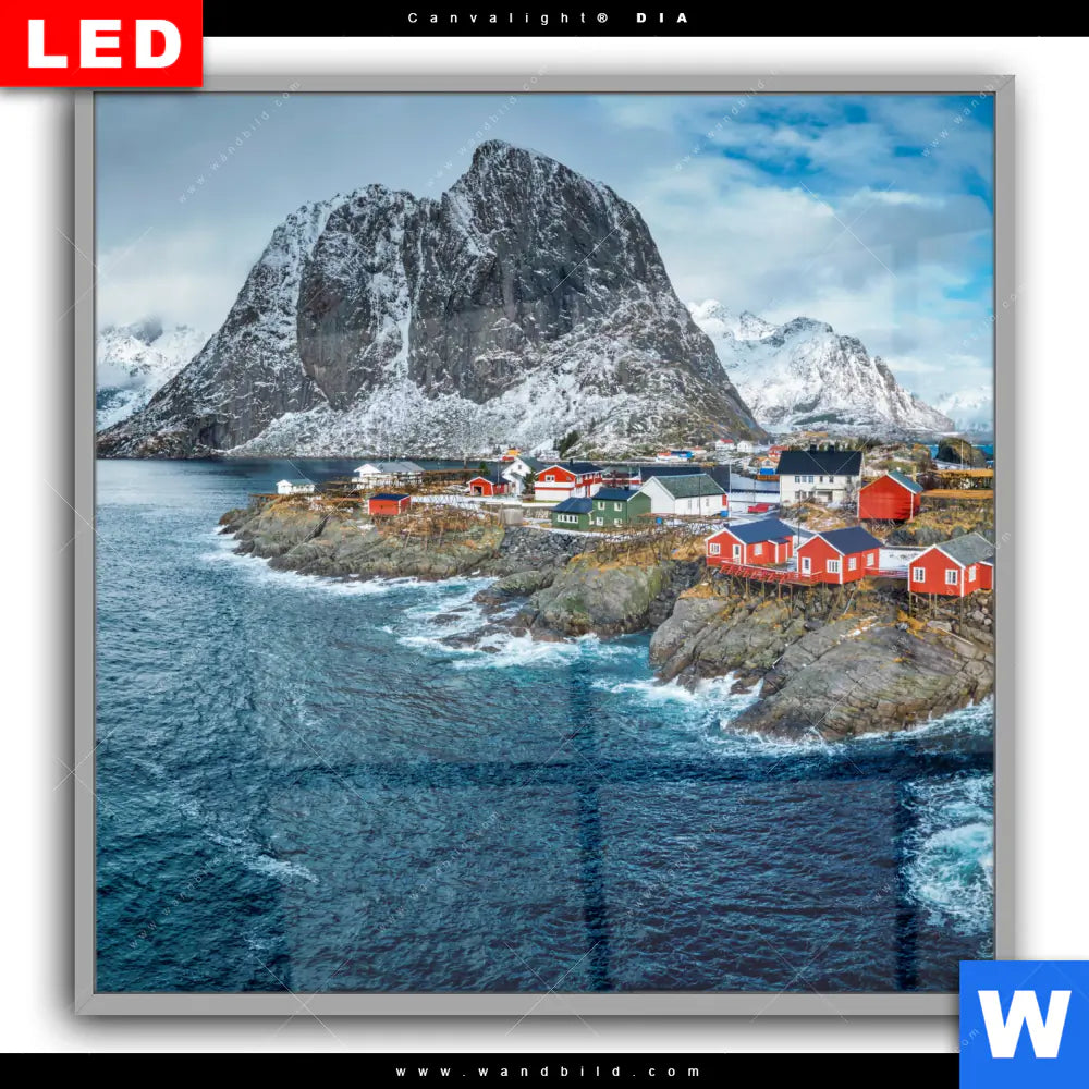 Canvalight® DIA Leuchtbild | Fischerdorf mit roten Häusern | Quadrat