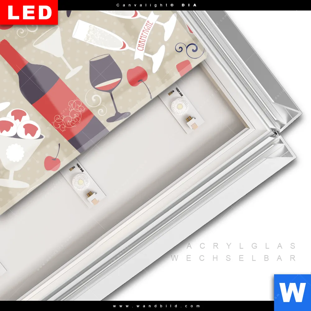 LED-Glasbild mit austauschbarem Acrylglas-Druck (Wechselbild)