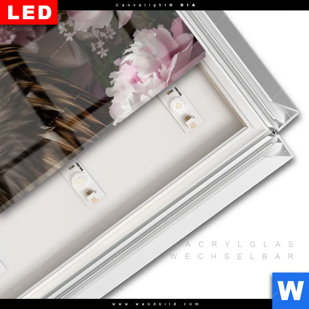 Canvalight® DIA Leuchtbild | Florale Eleganz und Adlerblick | Panorama
