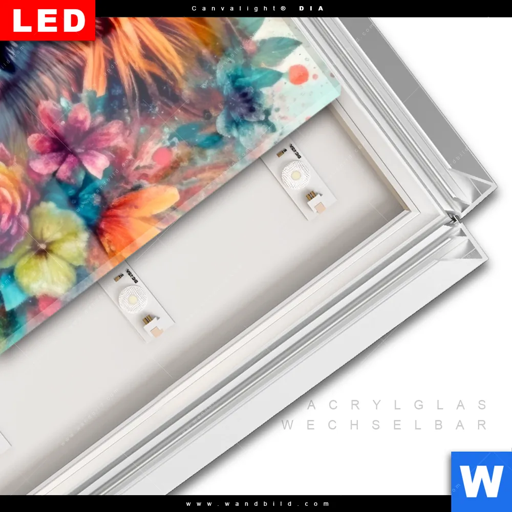LED-Glasbild mit austauschbarem Acrylglas-Druck (Wechselbild)