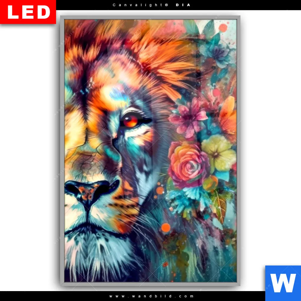 Canvalight® DIA Leuchtbild | Floraler Löwe | Hochformat