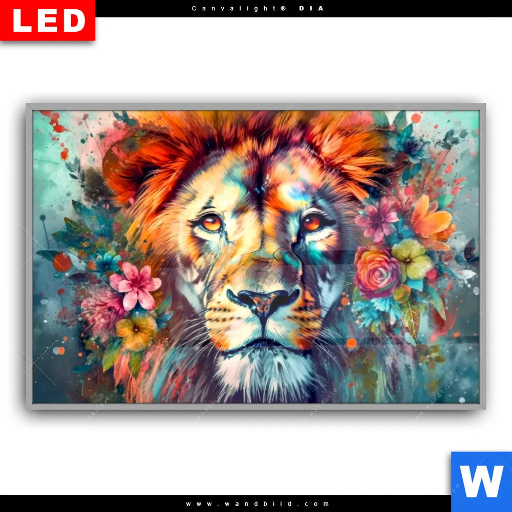 Canvalight® DIA Leuchtbild | Floraler Löwe | Querformat