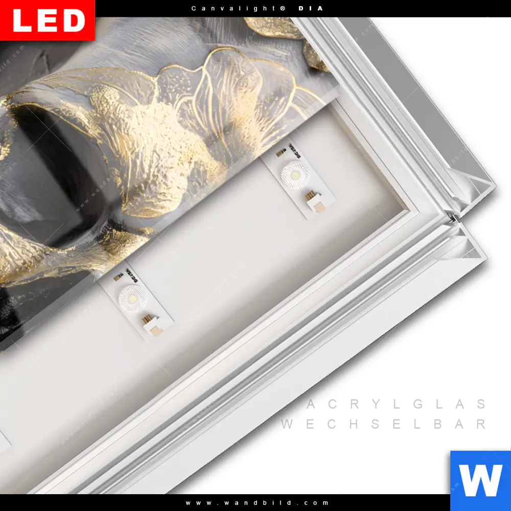 LED-Glasbild mit austauschbarem Acrylglas-Druck (Wechselbild)