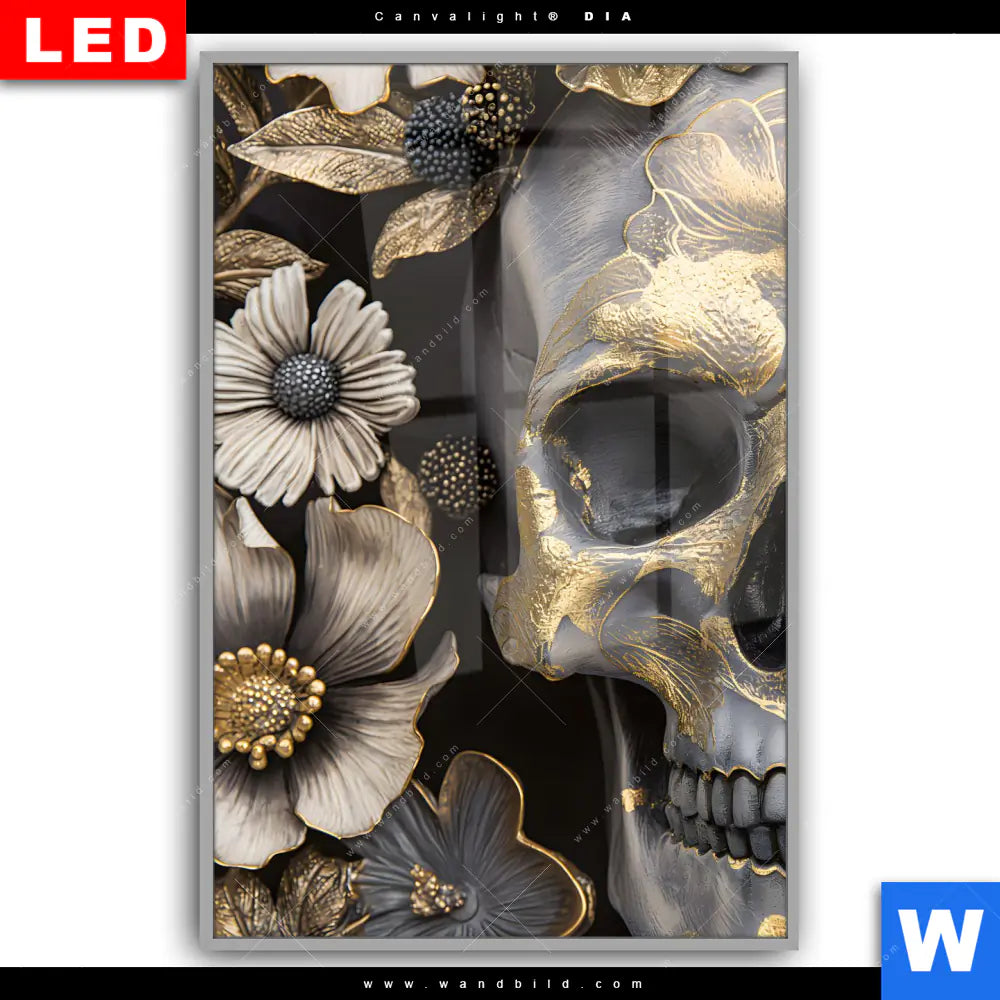 Canvalight® DIA Leuchtbild | Floraler Totenschädel | Hochformat