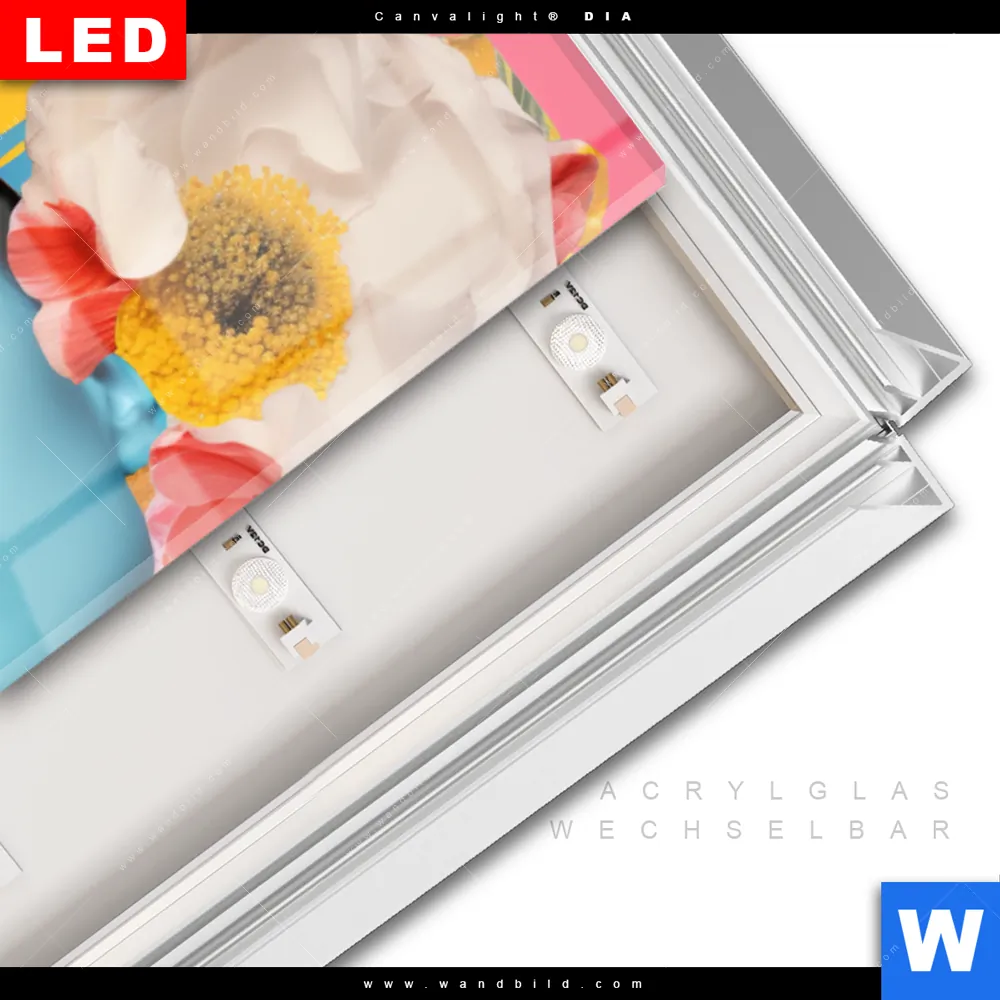 LED-Glasbild mit austauschbarem Acrylglas-Druck (Wechselbild)