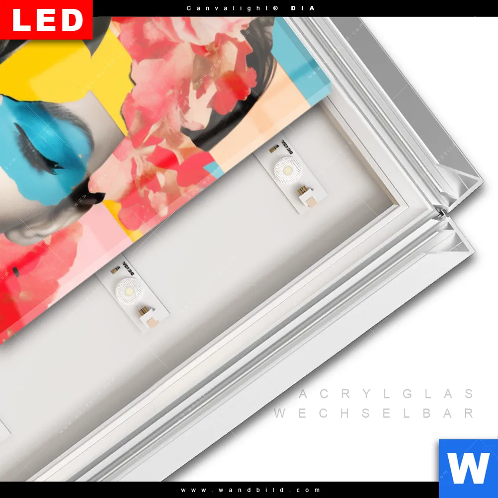 LED-Glasbild mit austauschbarem Acrylglas-Druck (Wechselbild)