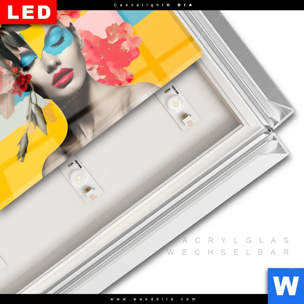 LED-Glasbild mit austauschbarem Acrylglas-Druck (Wechselbild)