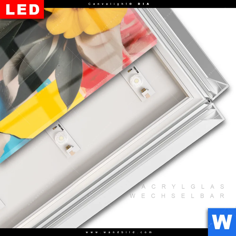 LED-Glasbild mit austauschbarem Acrylglas-Druck (Wechselbild)