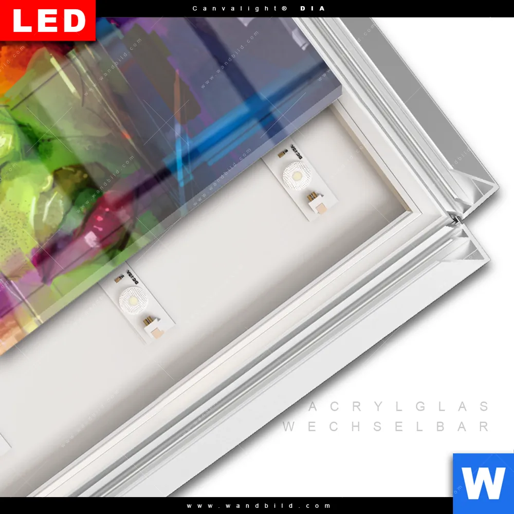 LED-Glasbild mit austauschbarem Acrylglas-Druck (Wechselbild)