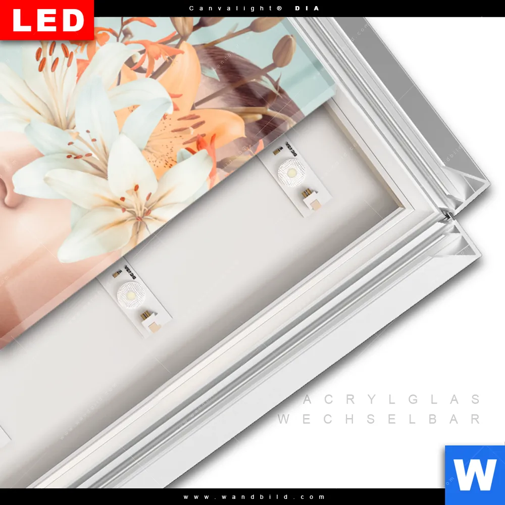 LED-Glasbild mit austauschbarem Acrylglas-Druck (Wechselbild)
