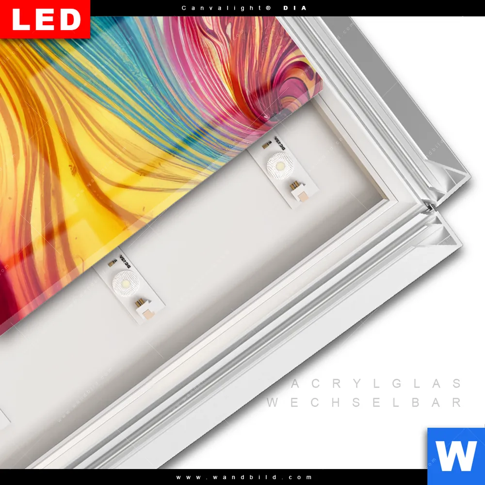 LED-Glasbild mit austauschbarem Acrylglas-Druck (Wechselbild)