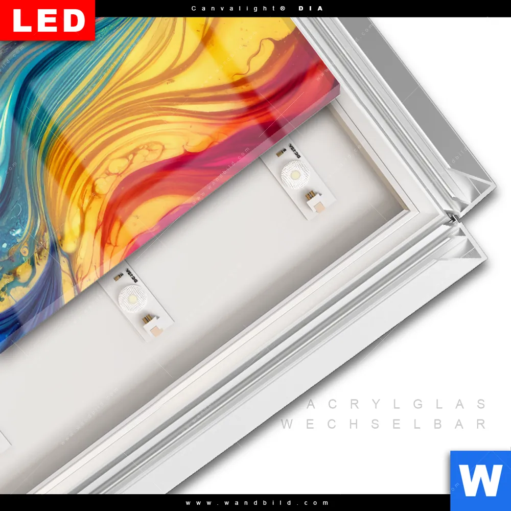 LED-Glasbild mit austauschbarem Acrylglas-Druck (Wechselbild)