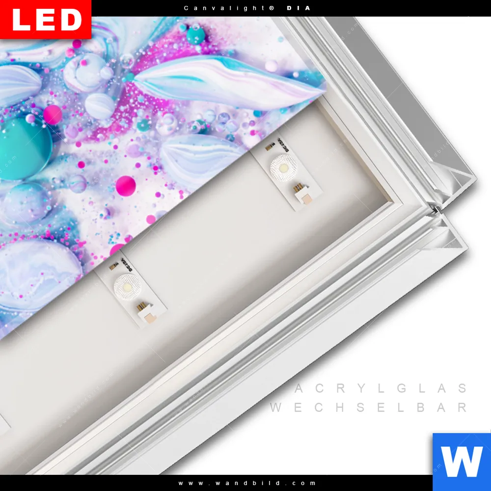LED-Glasbild mit austauschbarem Acrylglas-Druck (Wechselbild)