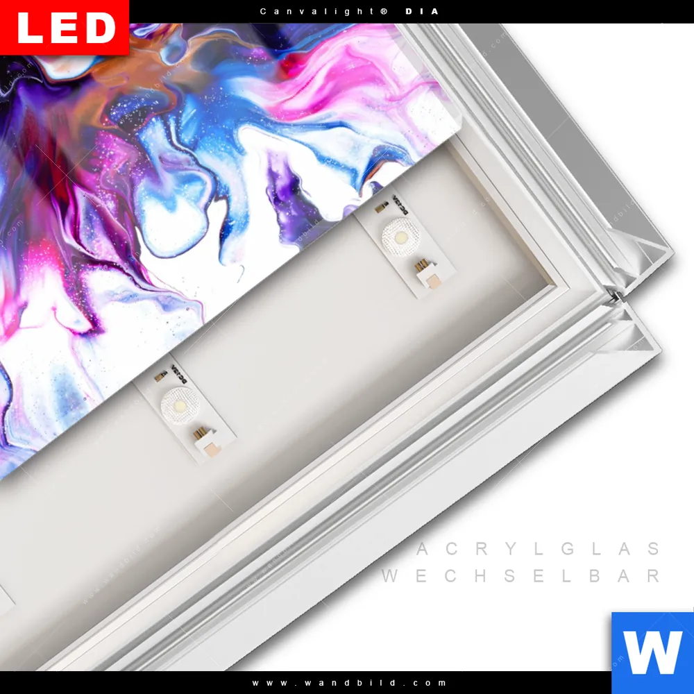 LED-Glasbild mit austauschbarem Acrylglas-Druck (Wechselbild)