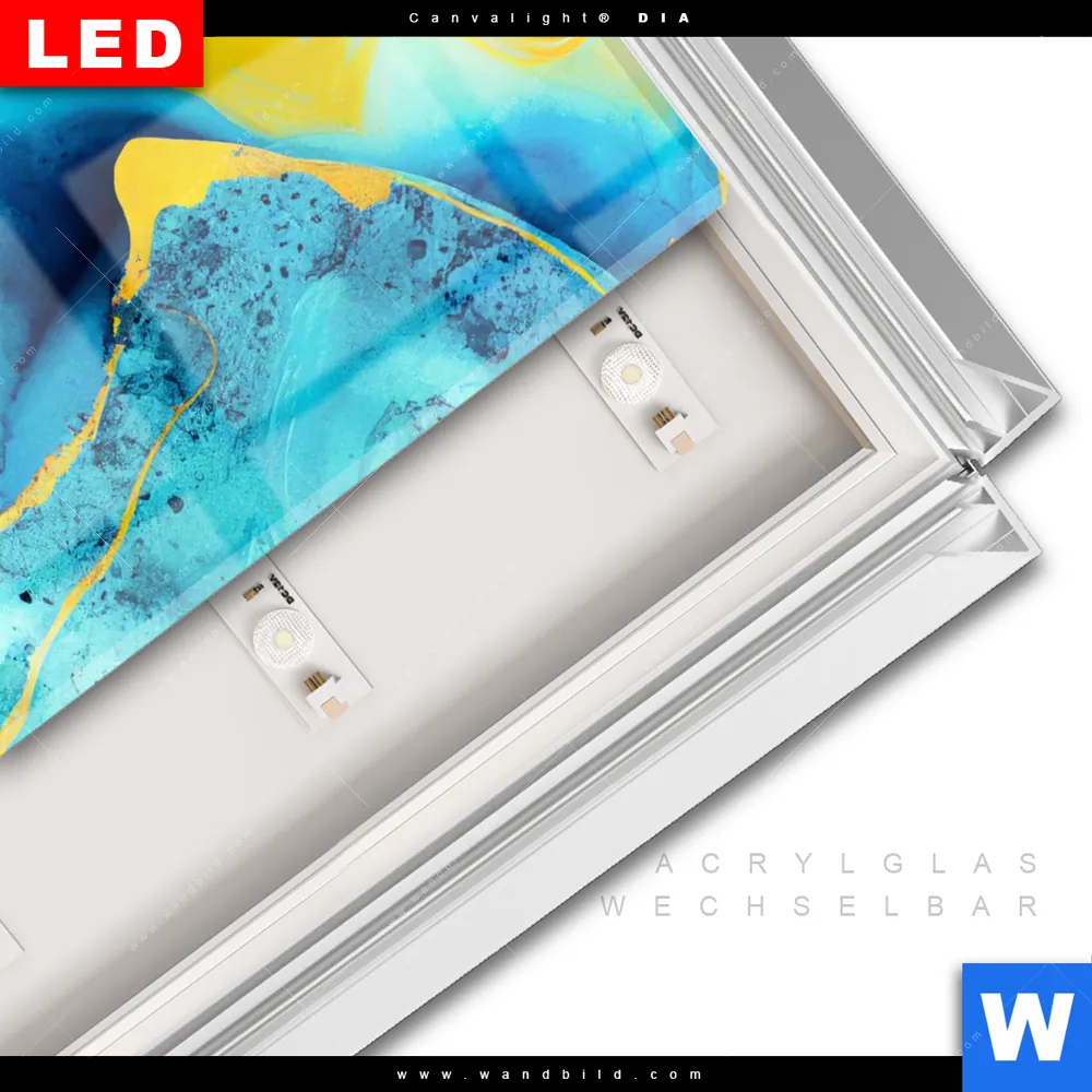LED-Glasbild mit austauschbarem Acrylglas-Druck (Wechselbild)