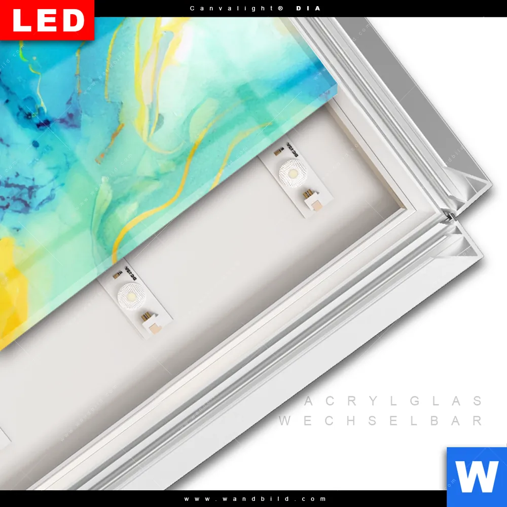 LED-Glasbild mit austauschbarem Acrylglas-Druck (Wechselbild)