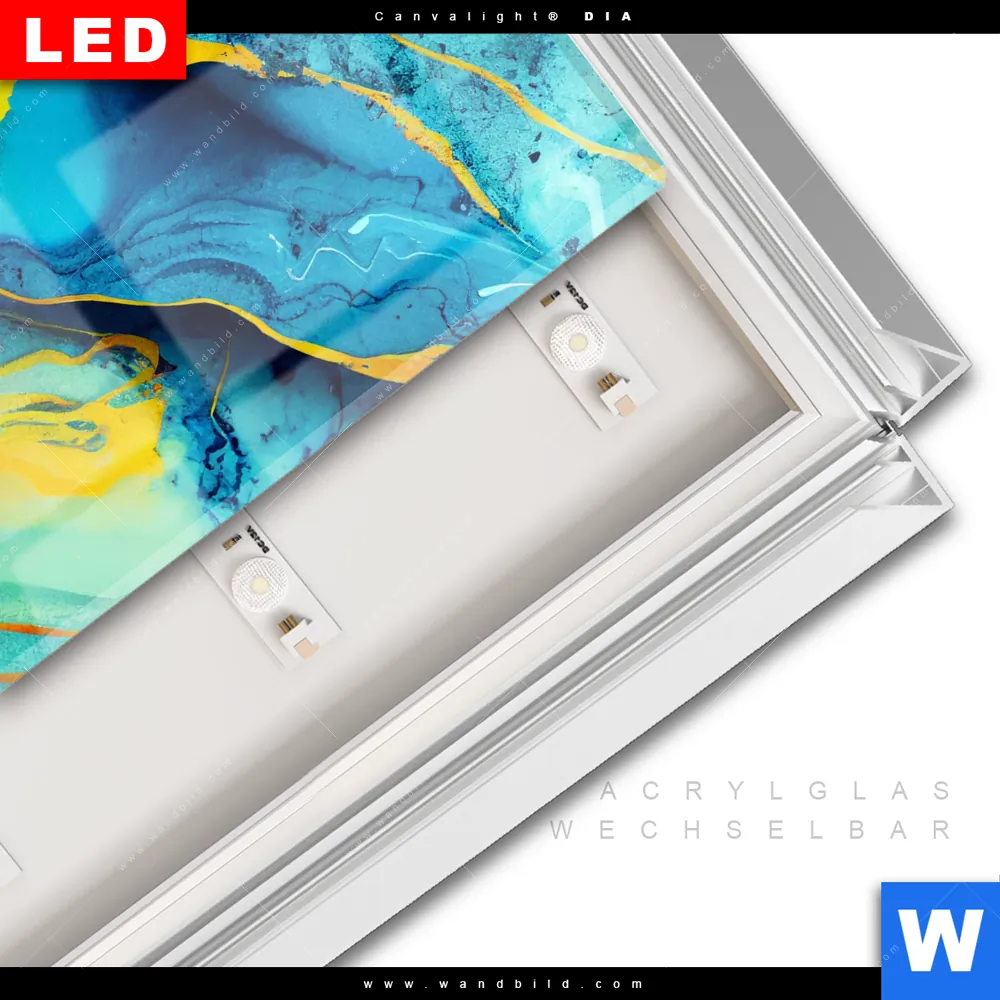 LED-Glasbild mit austauschbarem Acrylglas-Druck (Wechselbild)