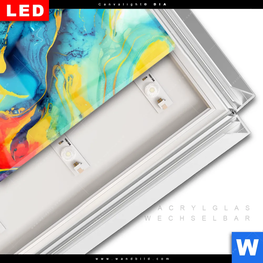 LED-Glasbild mit austauschbarem Acrylglas-Druck (Wechselbild)