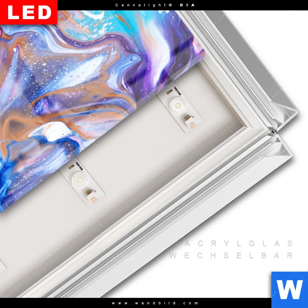 LED-Glasbild mit austauschbarem Acrylglas-Druck (Wechselbild)