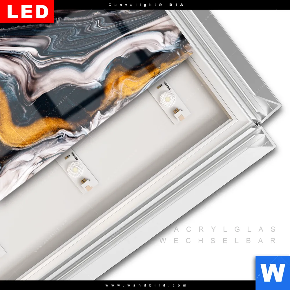 LED-Glasbild mit austauschbarem Acrylglas-Druck (Wechselbild)