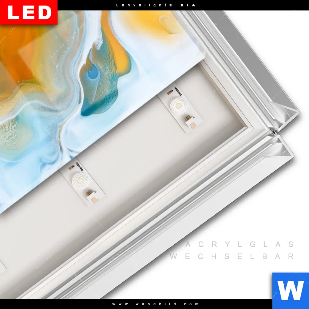 LED-Glasbild mit austauschbarem Acrylglas-Druck (Wechselbild)