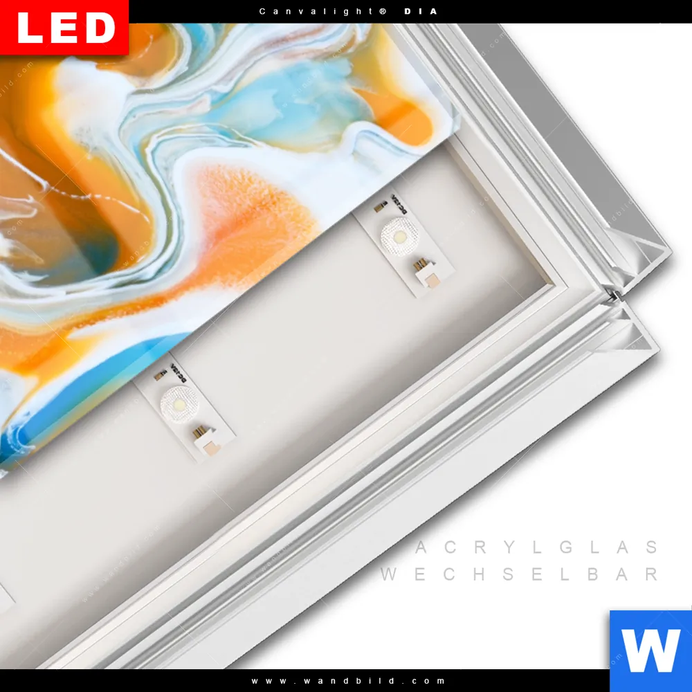 LED-Glasbild mit austauschbarem Acrylglas-Druck (Wechselbild)