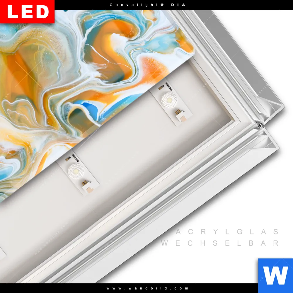 LED-Glasbild mit austauschbarem Acrylglas-Druck (Wechselbild)