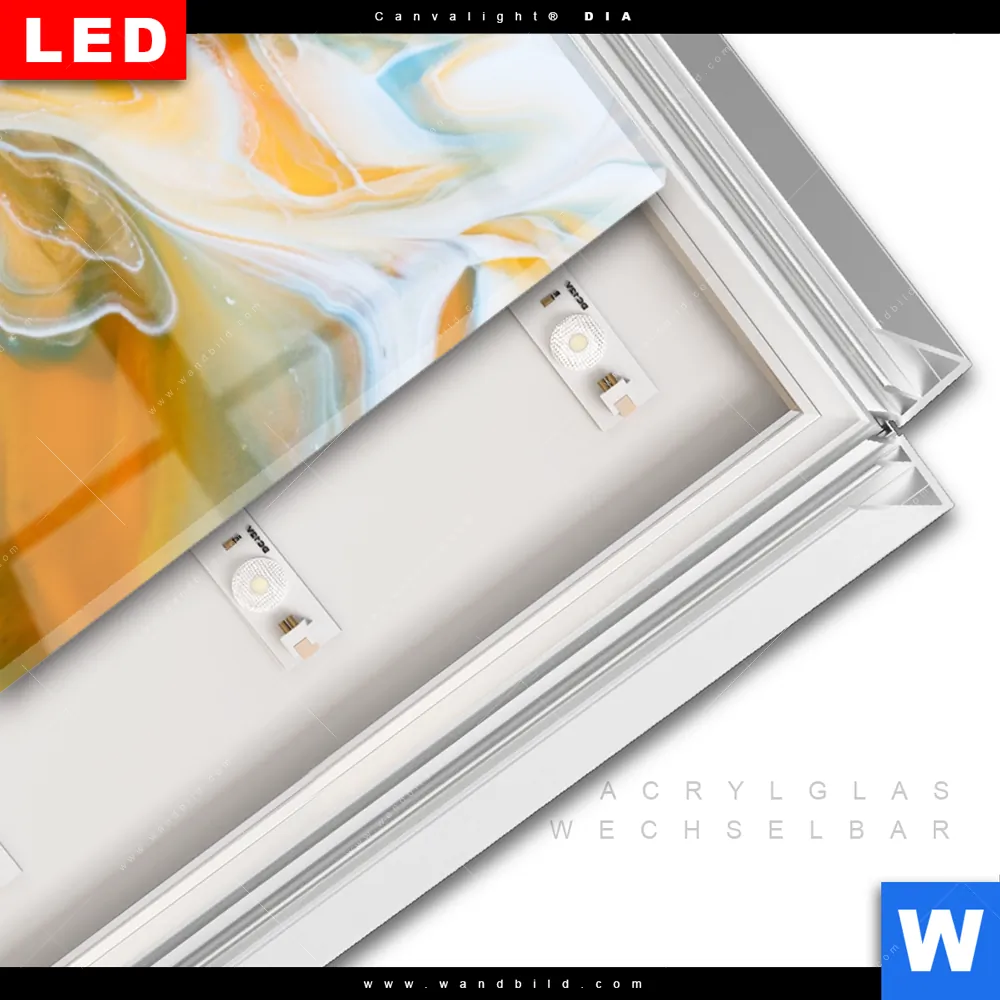 LED-Glasbild mit austauschbarem Acrylglas-Druck (Wechselbild)