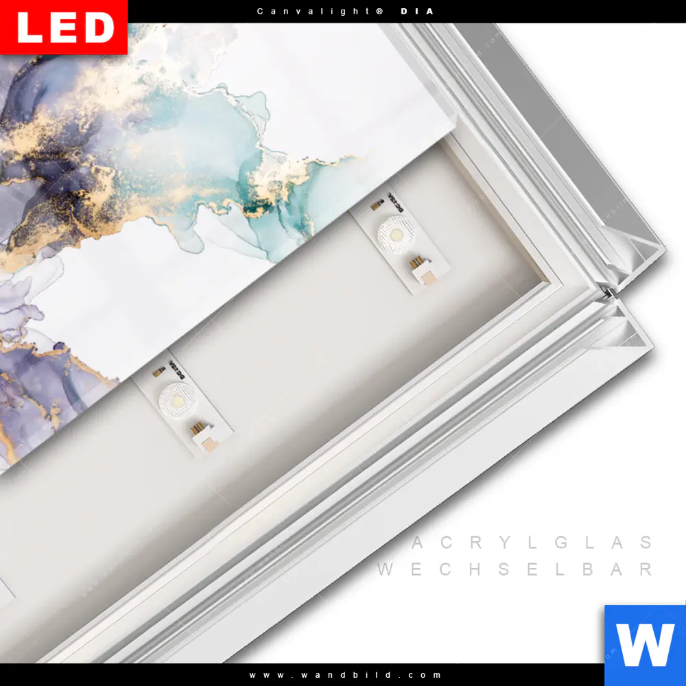 LED-Glasbild mit austauschbarem Acrylglas-Druck (Wechselbild)