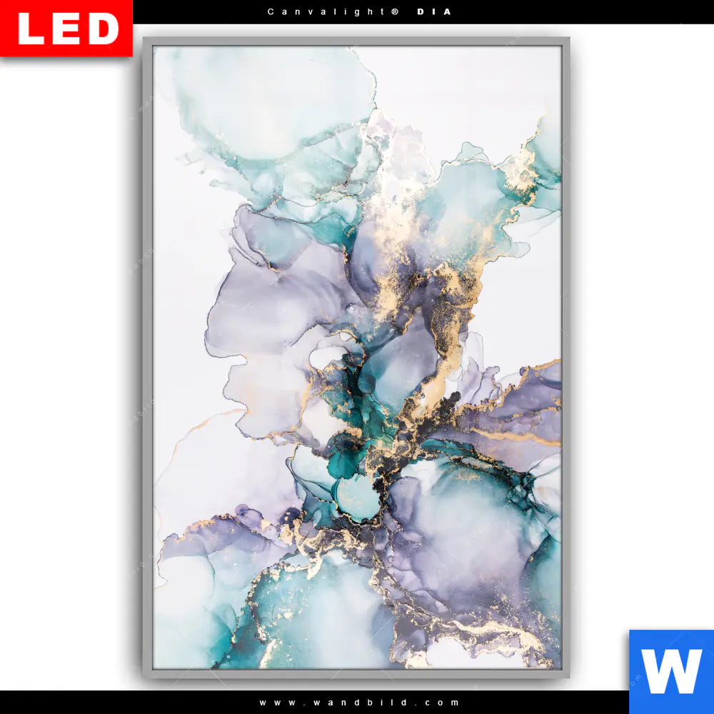 Canvalight® DIA Leuchtbild | Fluid Art Lila & Türkis | Hochformat