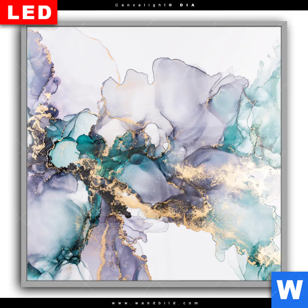 Canvalight® DIA Leuchtbild | Fluid Art Lila & Türkis | Quadrat