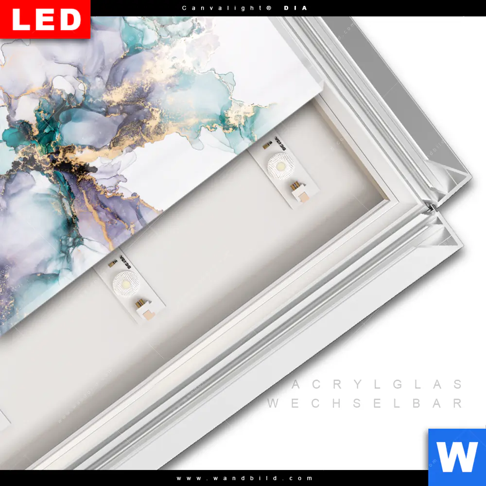 LED-Glasbild mit austauschbarem Acrylglas-Druck (Wechselbild)
