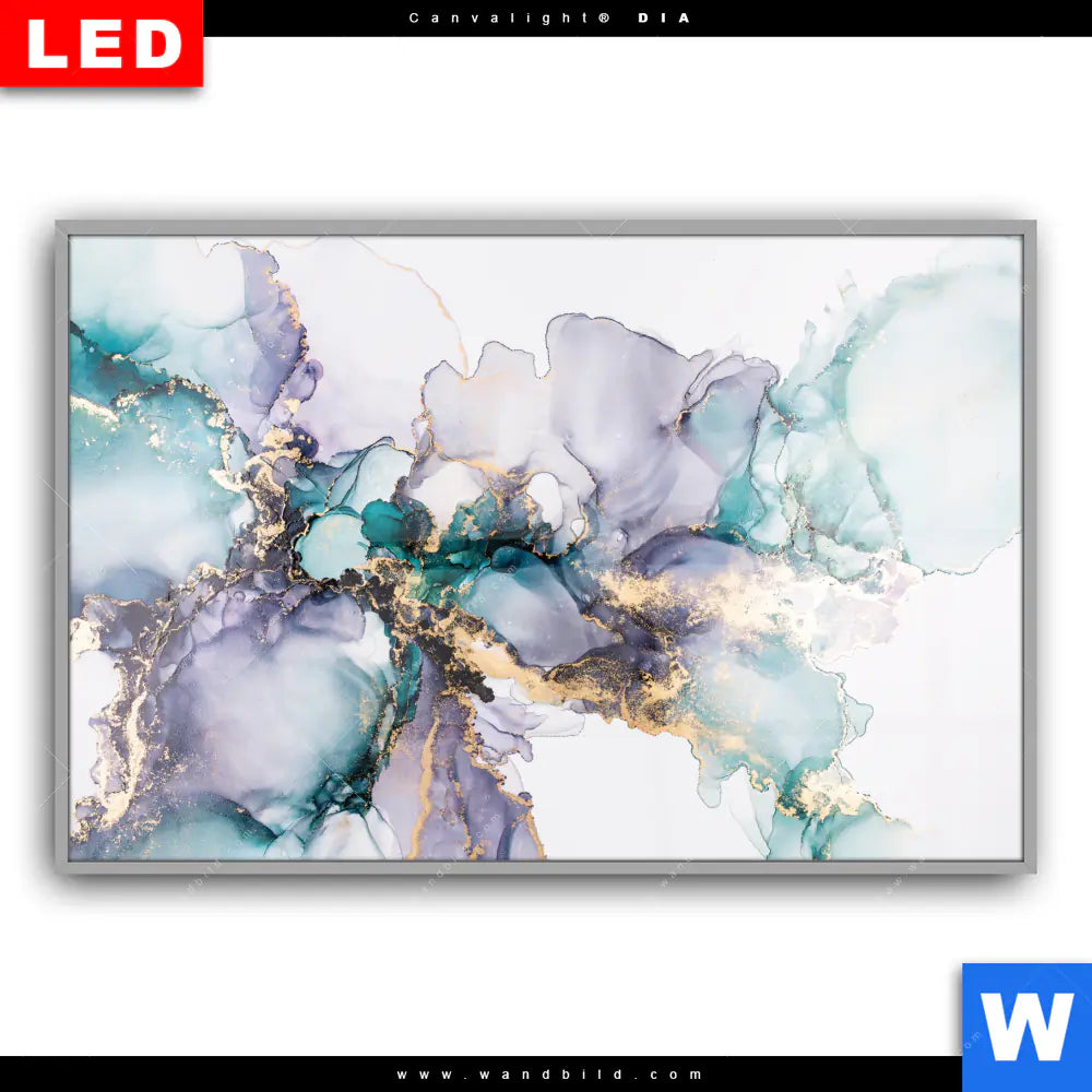 Canvalight® DIA Leuchtbild | Fluid Art Lila & Türkis | Querformat