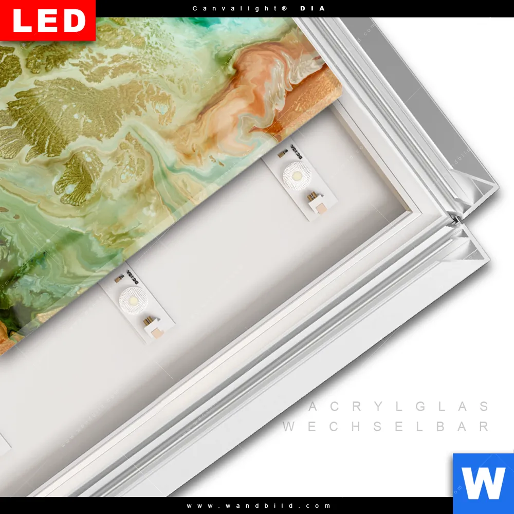 LED-Glasbild mit austauschbarem Acrylglas-Druck (Wechselbild)