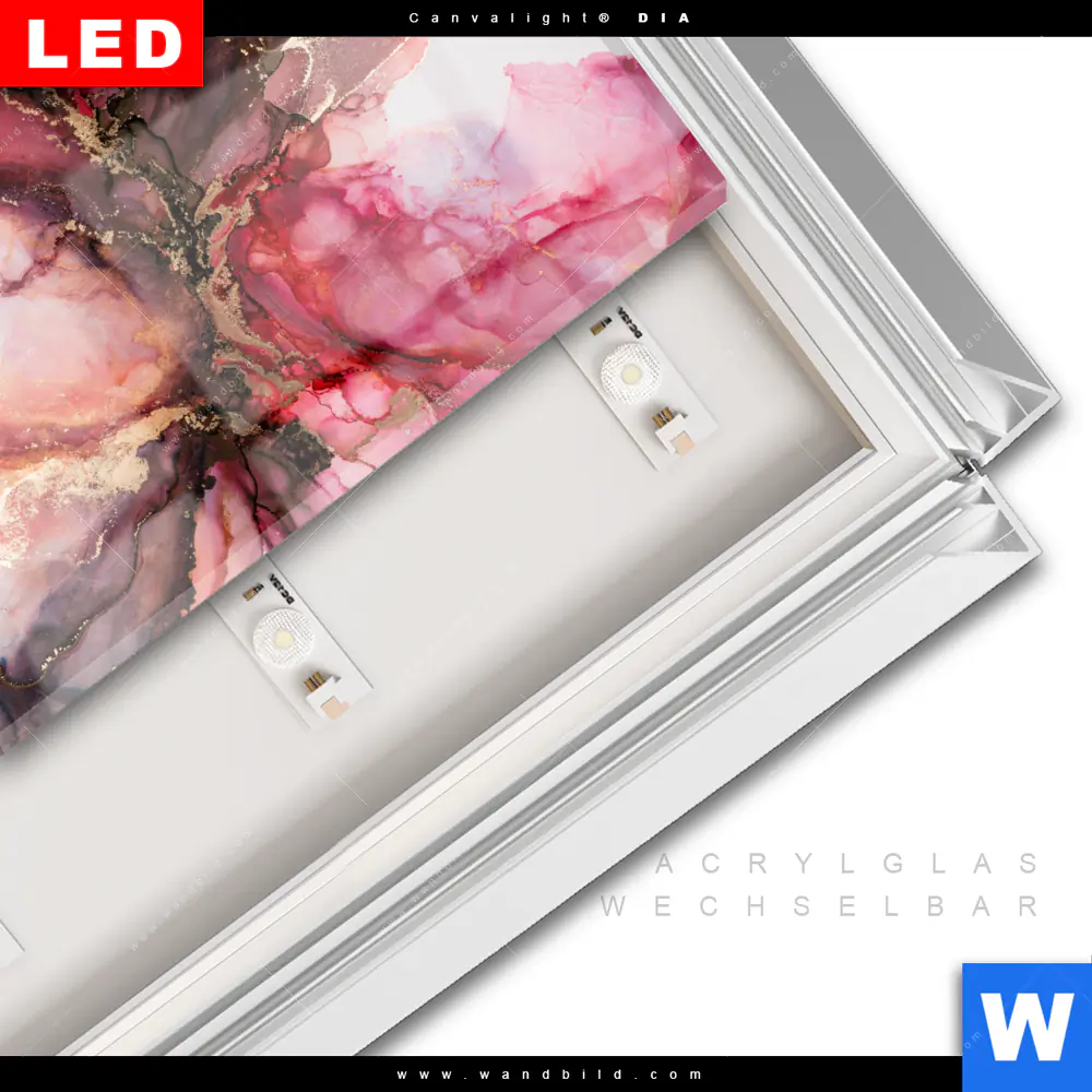 LED-Glasbild mit austauschbarem Acrylglas-Druck (Wechselbild)