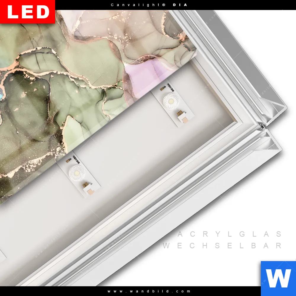 LED-Glasbild mit austauschbarem Acrylglas-Druck (Wechselbild)