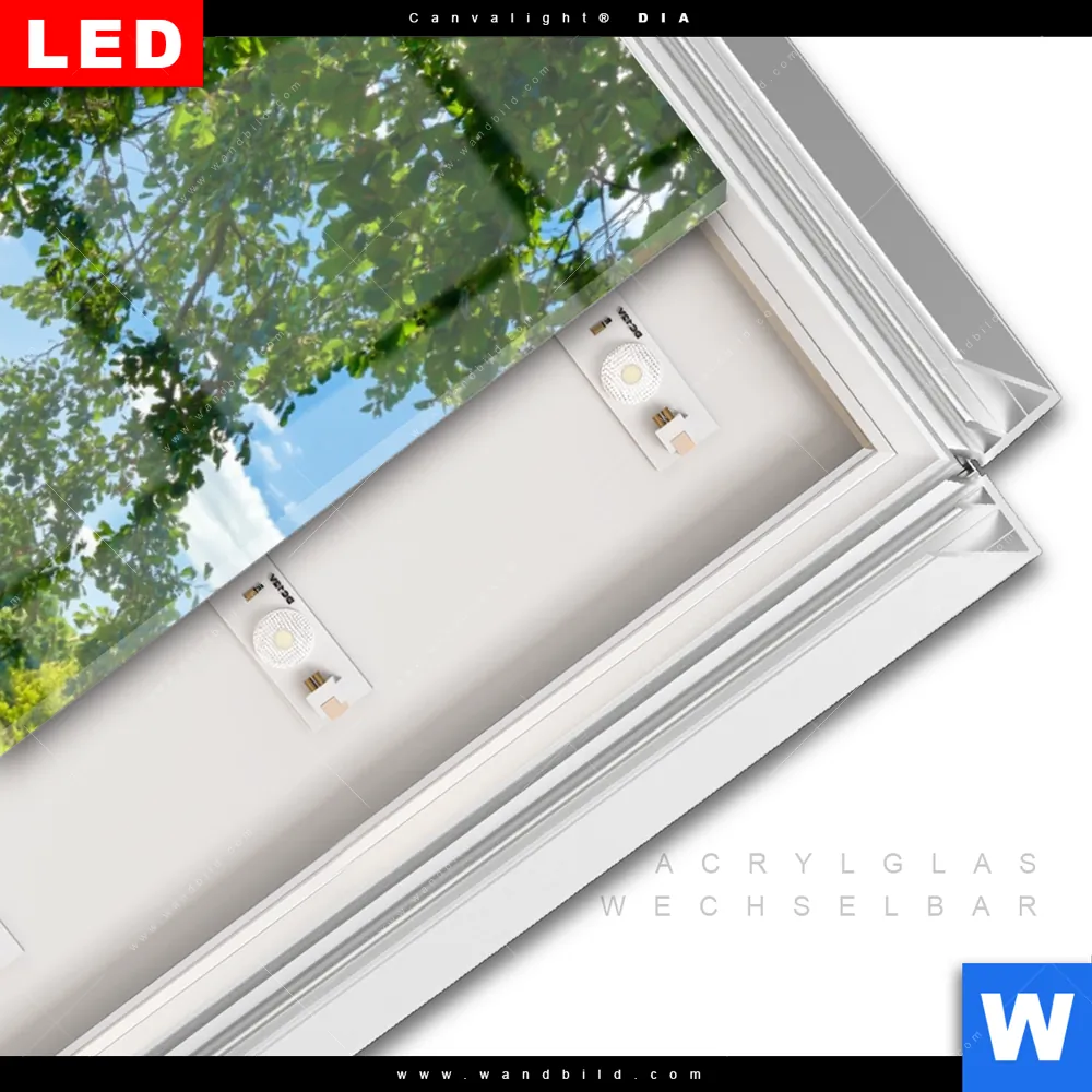 LED-Glasbild mit austauschbarem Acrylglas-Druck (Wechselbild)
