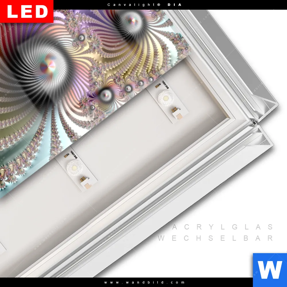 LED-Glasbild mit austauschbarem Acrylglas-Druck (Wechselbild)