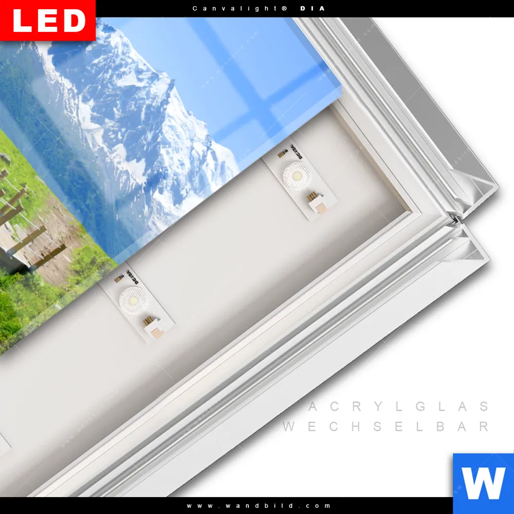 LED-Glasbild mit austauschbarem Acrylglas-Druck (Wechselbild)
