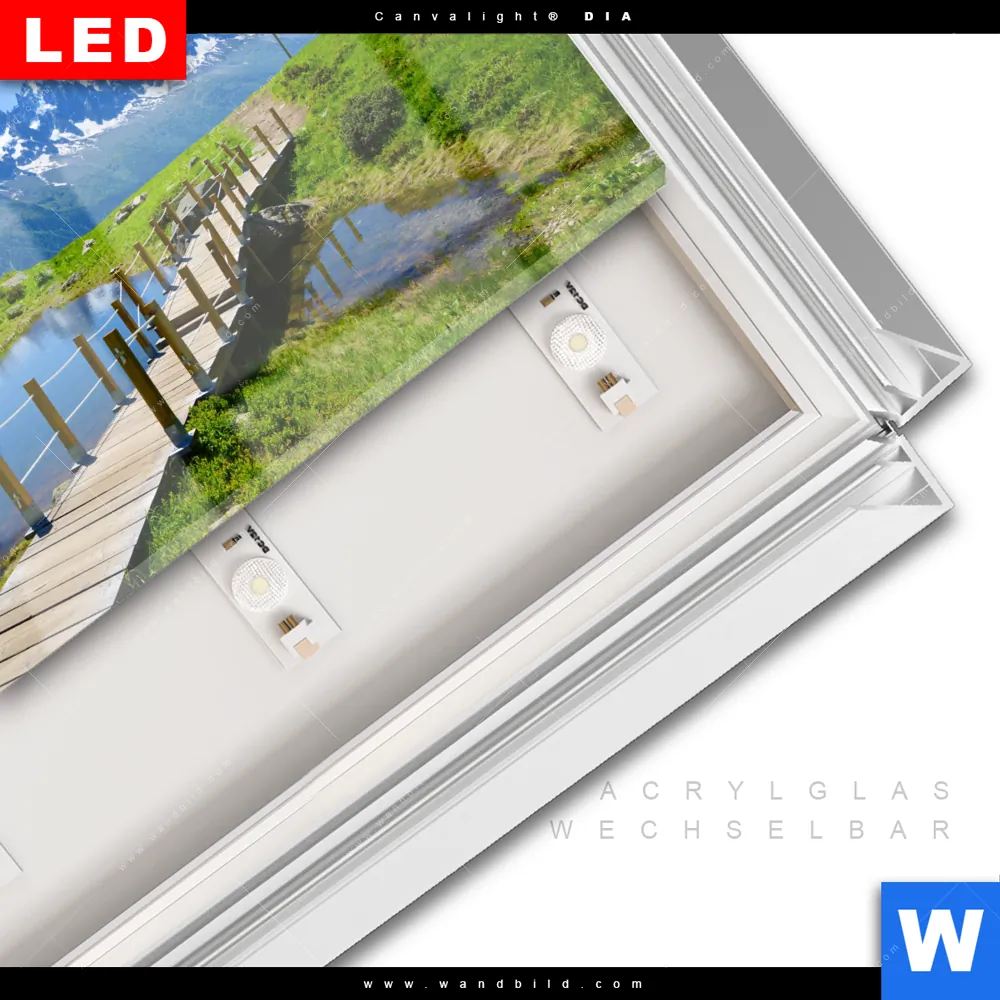 LED-Glasbild mit austauschbarem Acrylglas-Druck (Wechselbild)
