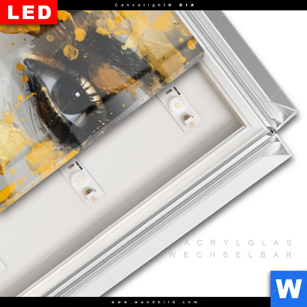 Canvalight® DIA Leuchtbild | Frau mit Goldfarbe | Schmal