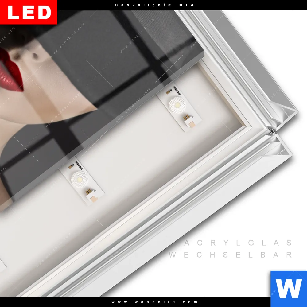 LED-Glasbild mit austauschbarem Acrylglas-Druck (Wechselbild)