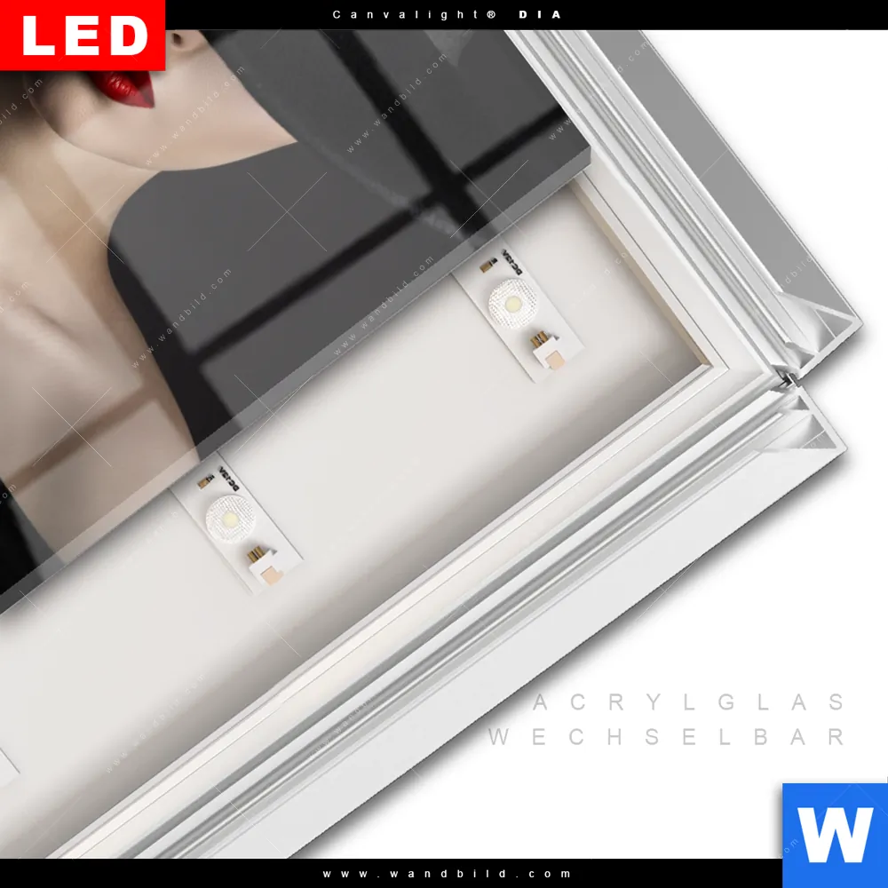 LED-Glasbild mit austauschbarem Acrylglas-Druck (Wechselbild)