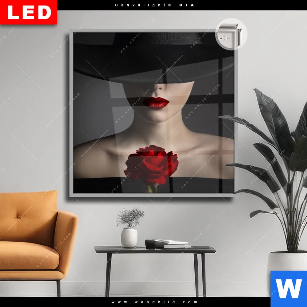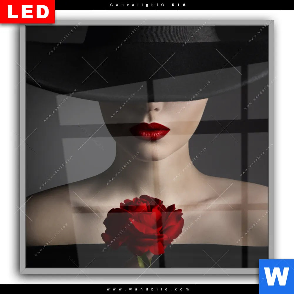 Canvalight® DIA Leuchtbild | Frau mit Hut & Rose | Quadrat