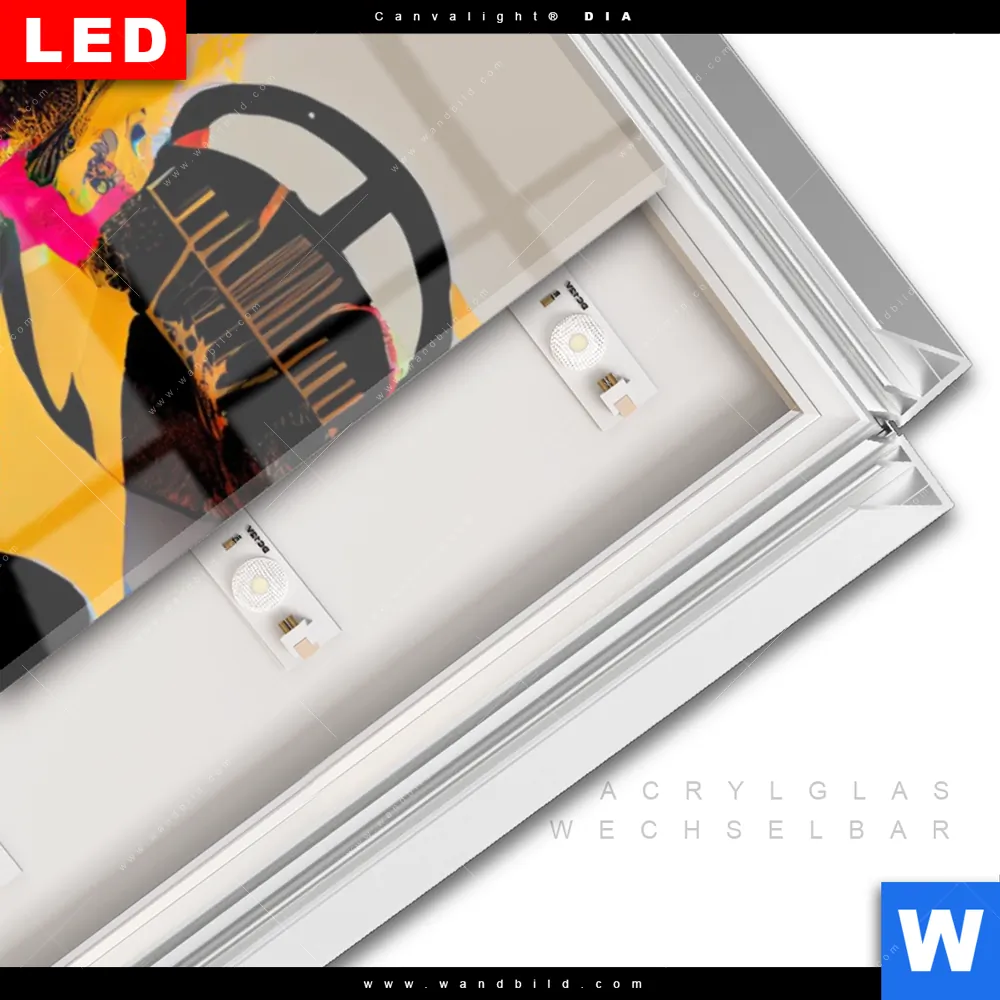 LED-Glasbild mit austauschbarem Acrylglas-Druck (Wechselbild)