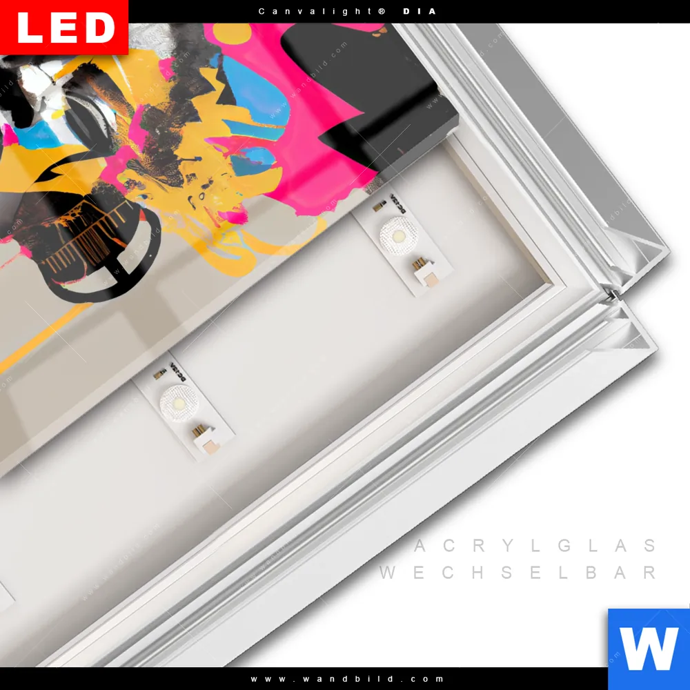 LED-Glasbild mit austauschbarem Acrylglas-Druck (Wechselbild)