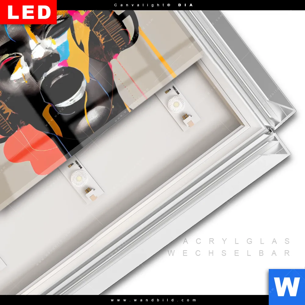 LED-Glasbild mit austauschbarem Acrylglas-Druck (Wechselbild)