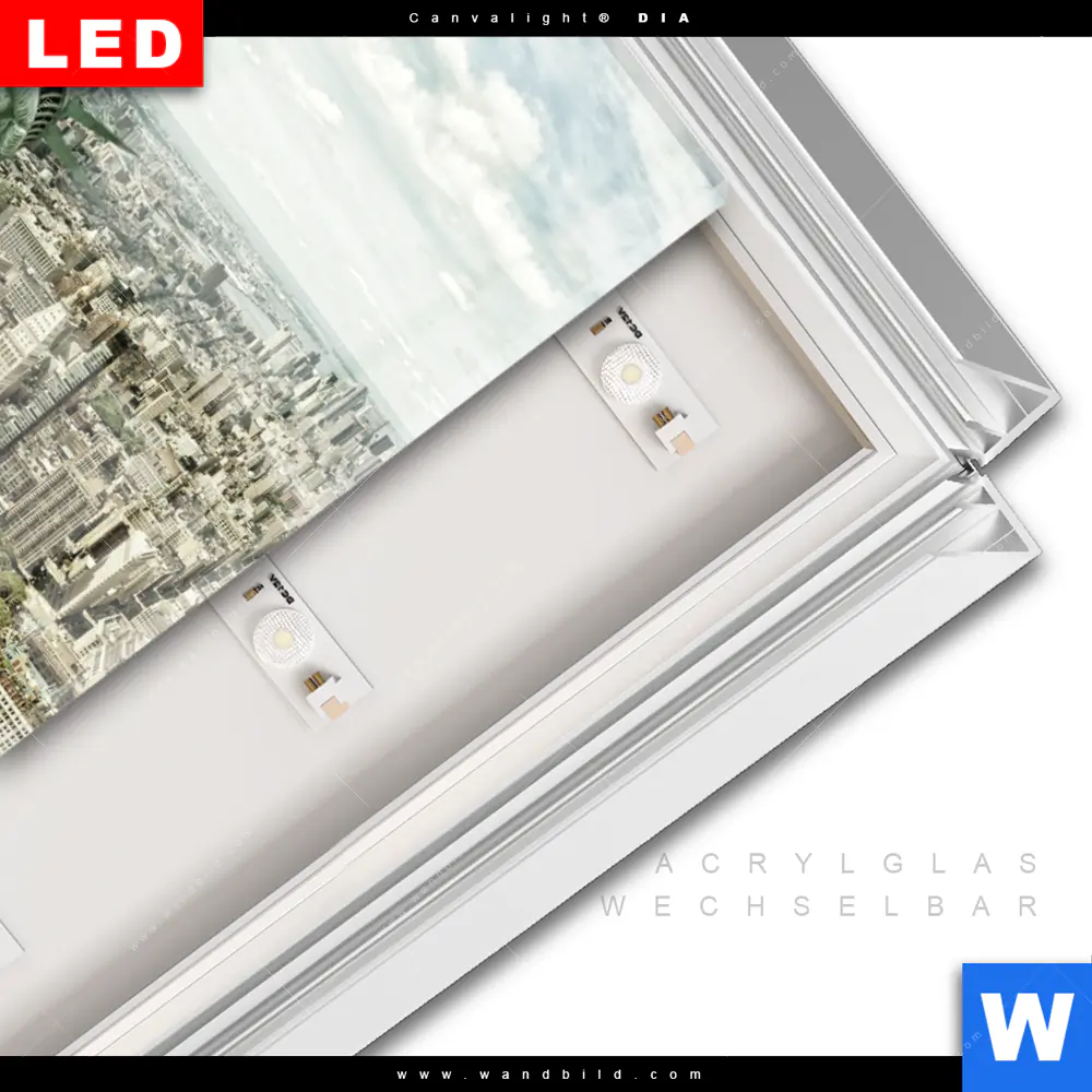 LED-Glasbild mit austauschbarem Acrylglas-Druck (Wechselbild)